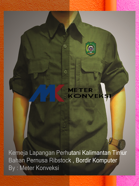 Kemeja ini kami buat dari bahan ripstop grade A yang lentur dan tidak luntur. Bahan ribstock itu bahan yang ada polanya kotak-kotak mirip dengan bahan yang digunakan untuk seragam TNI. Kemeja dengan desain ini memang cocok sekali saat di pakai untuk para petugas penjaga hutan, karena dengan kemeja seperti ini para petugas terlihat gagah dan berwibawa sehingga menambah rasa percaya diri saat bertugas. Untuk logo nya kita aplikasi kan bordir komputer dengan tingkat kerapihan dan ketelitian tinggi, sehingga gambar nya jelas.