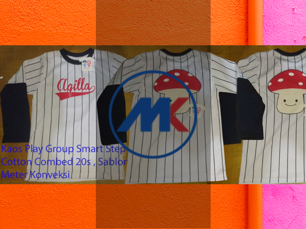 Kaos baseball ini adalah pesanan dari play group smart steps yang ber alamat di jalan Sulanjana kota Bandung. Zaman sekarang sebelum TK ada lagi tingkatan pendidikan yang biasa nya untuk kalangan menengah ke atas. Selain play group smart step juga bergerak dibidang day care dan semacamnya, saya sendiri juga kurang paham lini bisnisnya ^_^. Tapi kemaren yang pesan ke kita untuk kaos ini adalah untuk kelas play group nya. Kaos ini di pesan oleh salah satu guru pengasuh nya karena ada salah satu anak didik nya yang ulang tahun. Jadi dalam perayaan nya mereka di berikan kaos agar seragam dan kompak serta rapi. Desain kaos nya memang pas sekali untuk anak-anak usia balita dengan tema jamur yang lucu dan imut. Dan di berikan nama di masing-masing kaos nya agak tidak tertukar.