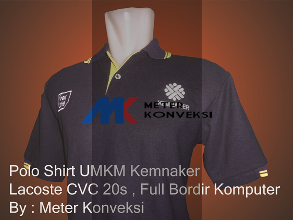 Kaos Polo Kerah Kementrian Tenaga KerjaKonveksi kaos kerah kami mengerjakan pesanan dari dinas ketenagakerjaan kota Bandung, yang akan dipakai untuk salah satu acara UMKM. Kaos polo kerah pesanan berikut supaya rapi dan terlihat bagus maka para peserta acara UMKM ini diseragamkan pakaian nya dengan polo shirt ini. Warna dasar polo shirt yang dipilih adalah warna biru tua cenderung ke blueblack dan dengan aksen kuning sebagai pemanisnya. Polo ini dibordirkan logo kemnaker karena mungkin dinas yang memesan polo ini memang masih bagian dari kementrian ketenagakerjaan. Program seperti ini memang sangat penting untuk para pengusaha yang baru mulai atau pengusaha micro dan kecil. Tapi mungkin kadang sosialisasi nya kurang tepat sasaran ya, atau saya saja yang kurang update. Karena kalau kita tidak ada chanel dengan anggota dinas terkait akan susah kita untuk tahu program pemerintah seperti ini. Semoga kedepanya bisa lebih tepat sasaran kepada seluruh masyarakat Indonesia. Tidak hanya sebatas kepada orang-orang yang kenal dengan pegawai dinas.
