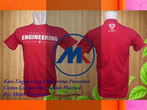 Kaos ini kami buat berdasarkan spesifikasi dari pemesan, untuk bahannya kita memakai bahan cotton combed 30s. Dan sablonan pada bagian depan dan belakang kita pakai sablon plastisol. Bahan cotton combed adalah bahan kaos yang umum dipakai untuk distro di Bandung dan bahan yang banyak dipakai konveksi kaos Bandung. Bahan ini memiliki beberapa pilihan tingkat ketebalan, yang paling tebal cotton combed 20s , yang sedang 24s dan agak tipis 30s. Ada juga cotton combed yang 36s , ini lebih tipis lagi, tapi jarang dipakai untuk pasar Indonesia karena agak menerawang. Biasanya bule-bule atau orang luar negri yang suka memakai bahan yang tipis ini. Untuk sablonan plastisol juga termasuk jenis obat sablon yang sering kita pakai, selain rubber quaret dan super white ( SW ).